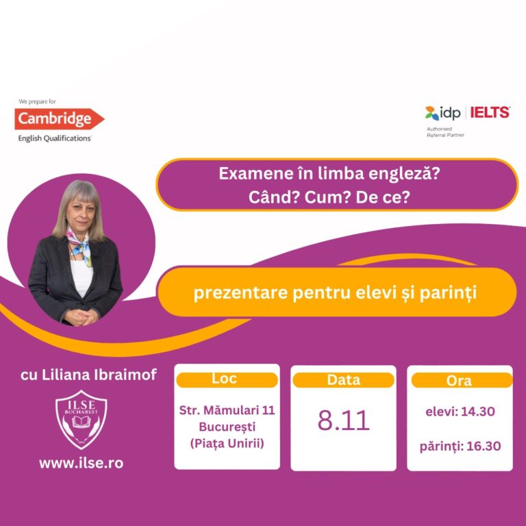 Prezentare pentru părinți și elevi vineri, 8 Noiembrie 2024 la sediul ILSE din București, Str.…